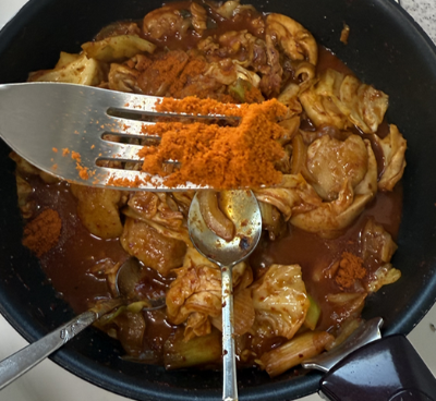 -닭고기나 야채들이 알맞게 익었는지 확인 해보고 , 양념이 베고 난 후의 간을 봅니다.