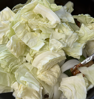 양배추, 양파 등 들어가는 모든 재료들을 손질하여 먹기 좋게 잘라줍니다.