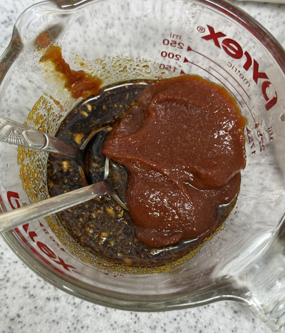 양념은 넣는 순서가 딱히 상관 없지만 가장 묽은 것 부터 넣어주면 숟가락을 씻거나 교체하는 횟수가 적어집니다.