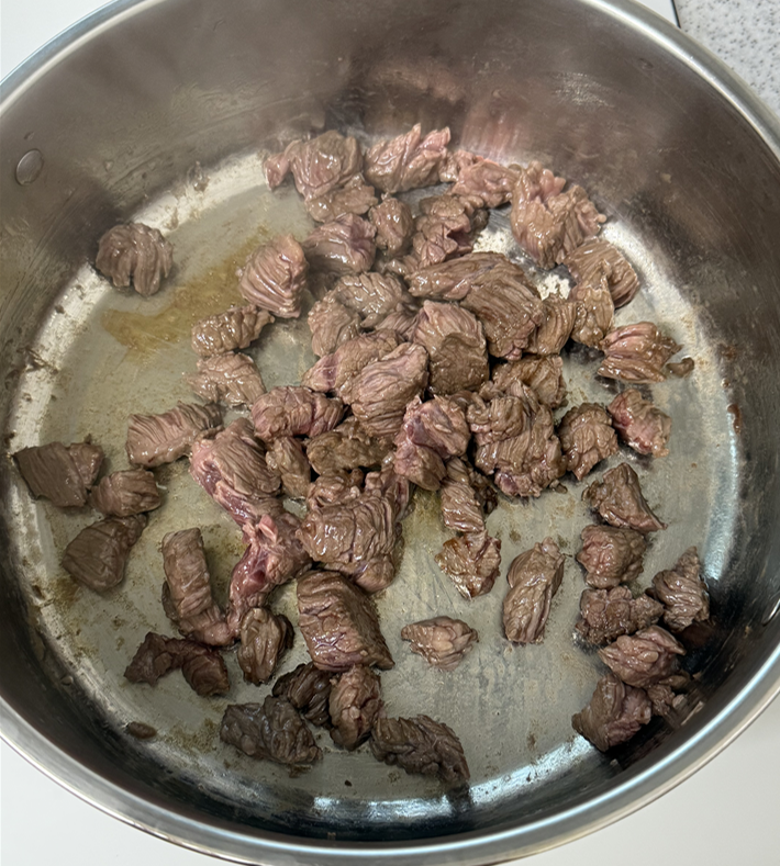 3.소고기와 참기름 한스푼을 넣고 소고기 겉면이 익을때까지 중불에 볶아줍니다.