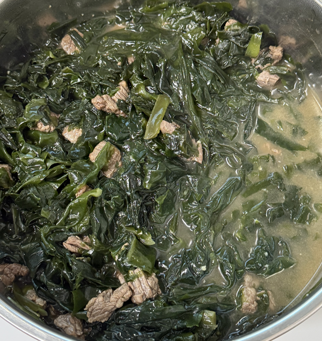 저는 고기와 미역을 볶아주고 사골맛 육수로 감칠맛을 추가하는 황금레시피를 소개 해드리겠습니다.