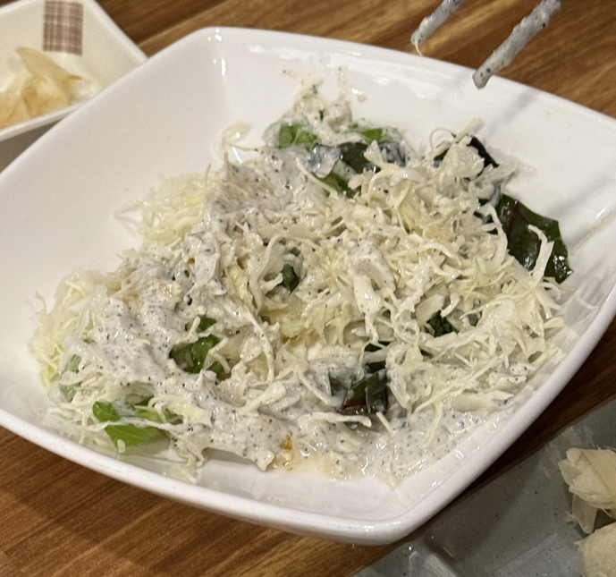 신기한 점은 우동이나 라면 같은 사이드 메뉴는 따로 없었고 처음에 우동과 샐러드가 기본으로 나왔습니다.