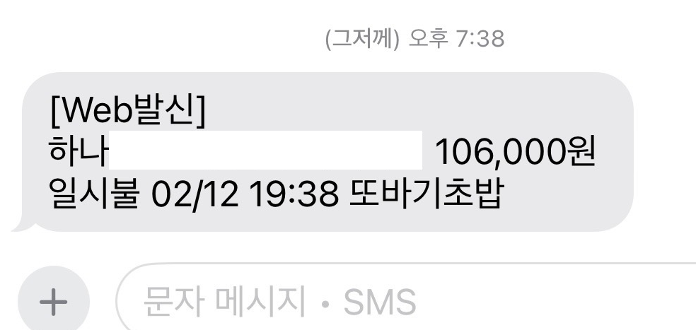 특선초밥 세트 4개 , 특 모듬초밥 2개 총 6개 +사이다 한 개 까지 총 ₩106,000원 결제 했답니다.