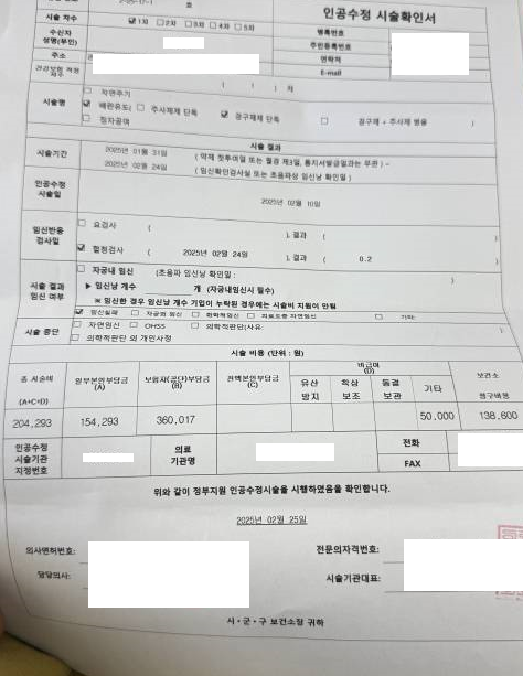 -피검사까지 해야 해당 회차가 종결되고 다음 회차 지원도 받을 수 있고, 약제비 청구시 필수 서류인 시술확인서가 나온답니다.