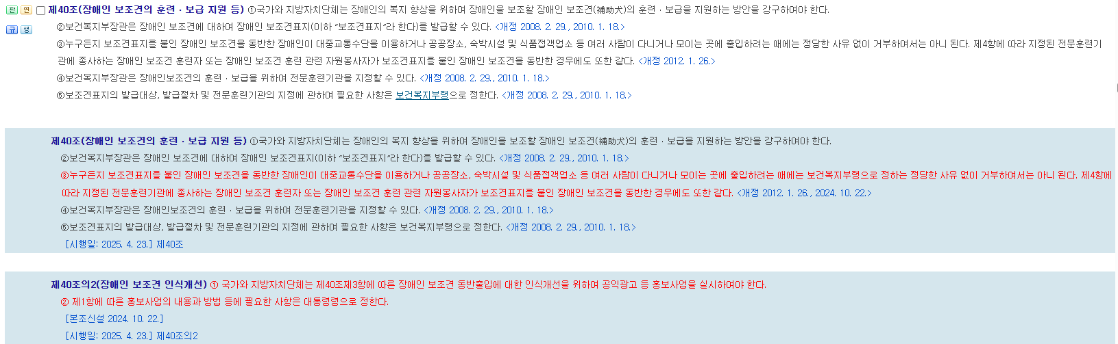 -2024년 10월 22일에 개정된 장애인 보조견 관련 법령이 2025년 4월 23일부터 시행 됩니다.
