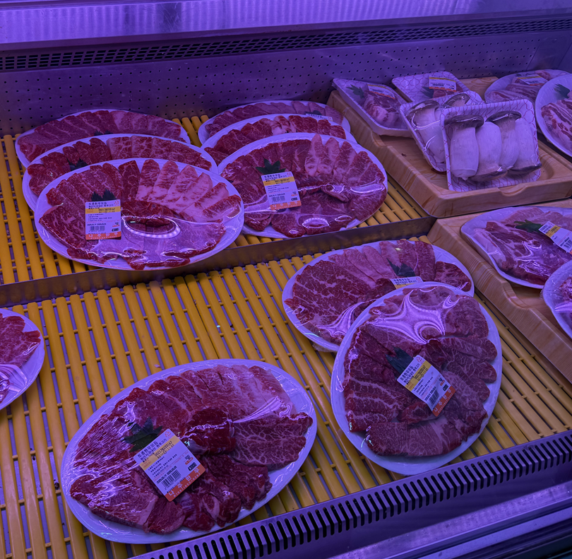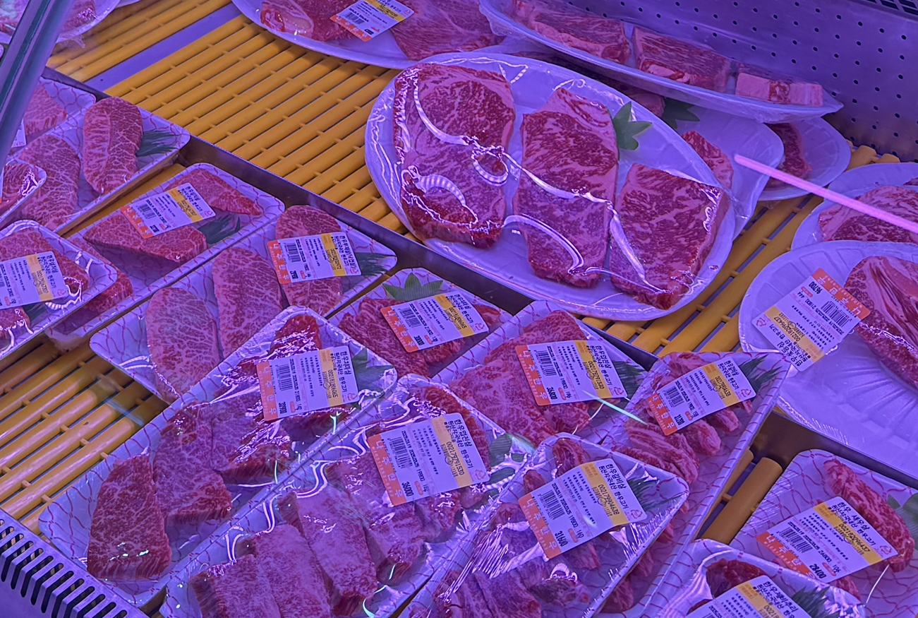 고기는 사진과 같이 포장 되어있고 , 골라서 계산대에 얘기 하면