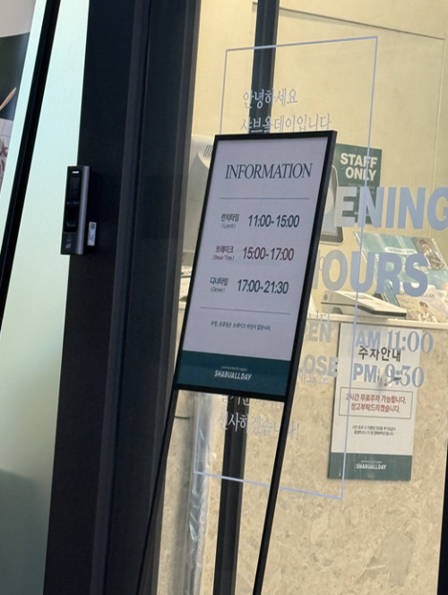 영업 시간은 오전 11시 - 오후 9시 30분 이고 라스트 오더는 오후 8시 입니다.