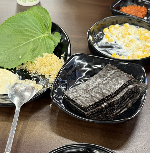 콩나물도 있고 , 깻잎에 마요네즈,날치알,콘치즈와 싸먹기때문에 적당히 맛있게 맵다고 할 수 있겠습니다.