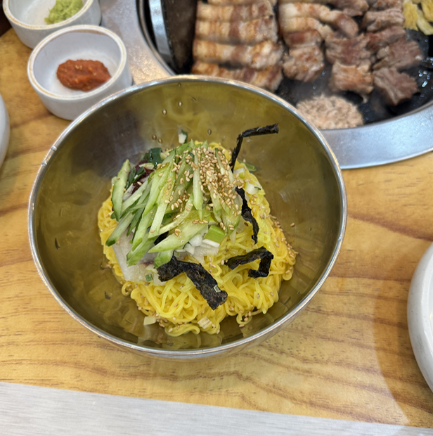 두 명이서 오겹살 2인분, 목살 1인분 , 된장찌개 , 냉소면 1개, 밥 한공기 먹고 배부르게 귀가 했습니다.