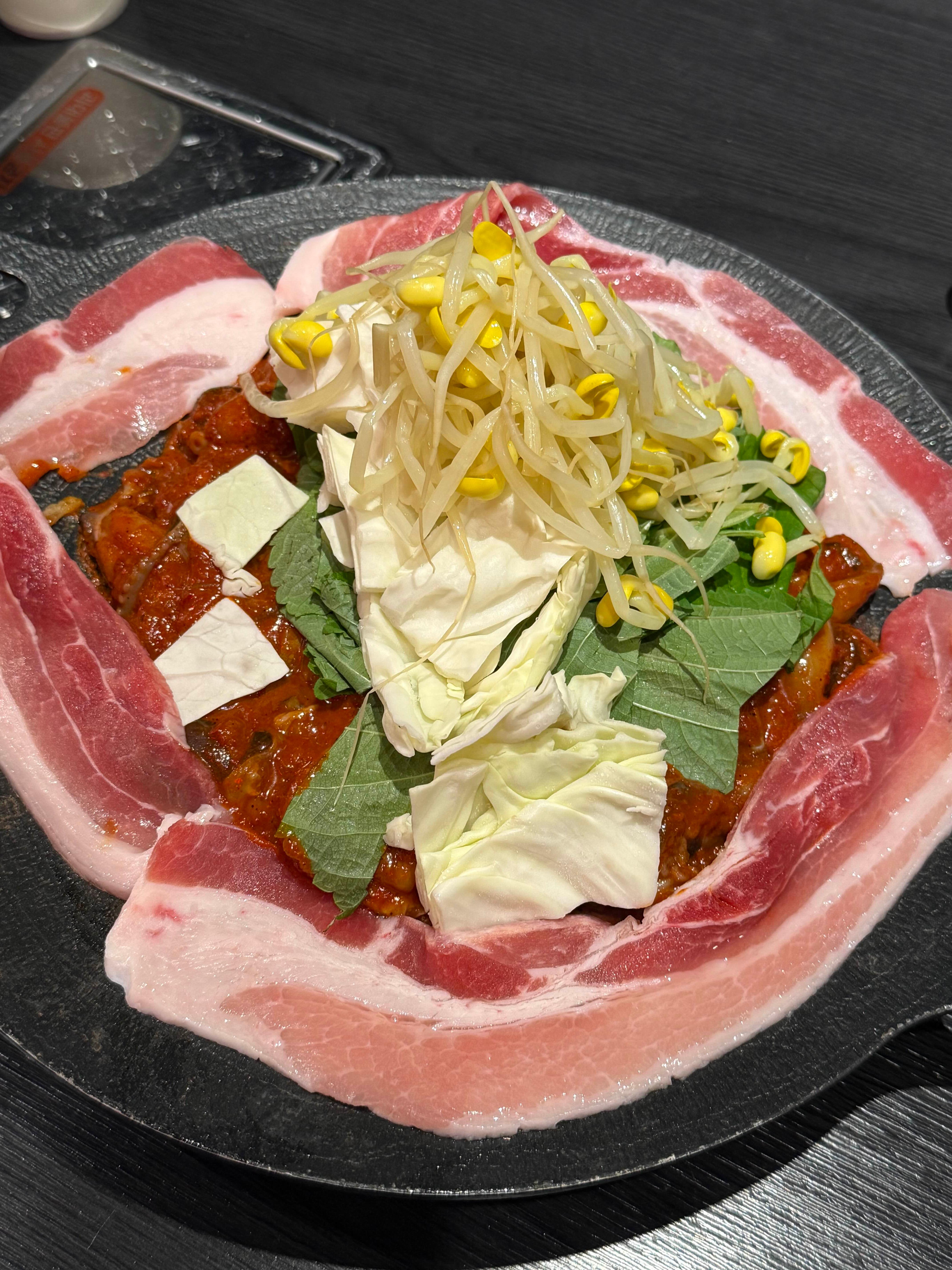 쭈식이 순한맛 2인분에 삼겹살 150g을 추가했답니다.