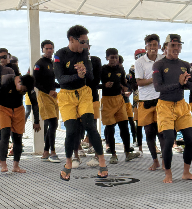 | 09:40 | 배에 올라타 레크레이션, 공연, 여러 사진촬영하며 한시간가량 호핑투어 첫번째 섬으로 이동 |